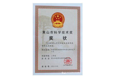 黃山市科學(xué)技術(shù)獎(jiǎng)三等獎(jiǎng)